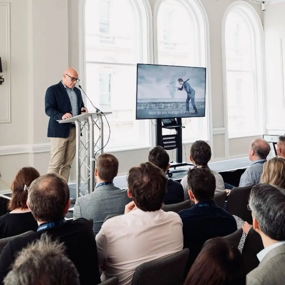 Project One CEO, James O'Sullivan delivering his keynote to the team at the annual summer conference.