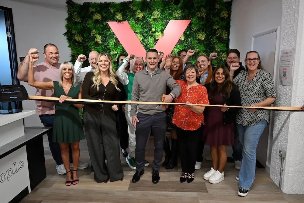 The CEO, John Antunes and some of the TXP team, cutting the ribbon to open the new office at Fort Dunlop