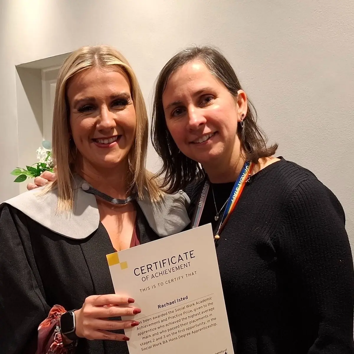 Staff supported to undertake a Social Work Degree - awarded top of her cohort!