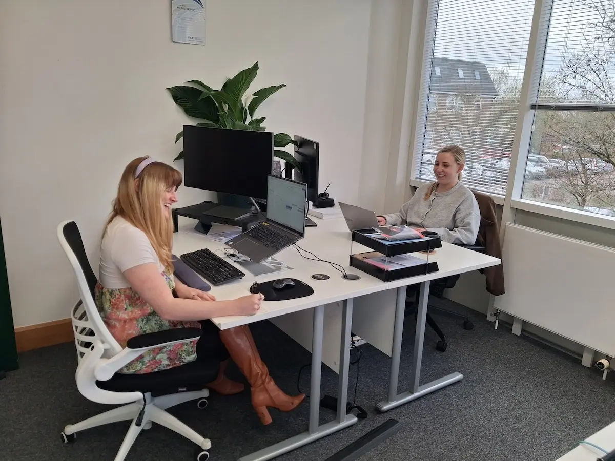 Tiffany Evans, Marketing Communications Specialist, and Millie Fortnam, Marketing Assistant, hard at work together!