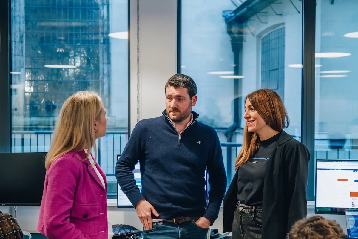 Coworkers chat in Webflow's London office